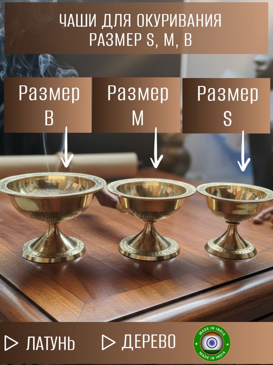 Элегантная чаша для окуривания с удобной деревянной ручкой — универсальный инструмент для ароматических ритуалов, очищения пространства и создания атмосферного уюта в доме. Изготовлена из прочной латуни с декоративной гравировкой, она выдерживает высокие температуры и равномерно распределяет тепло, обеспечивая аккуратное и безопасное тление.